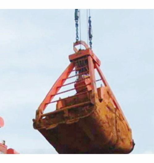起重機抓取干散貨物的專用工具。由兩塊或多塊可啟閉的斗狀顎板合在一起組成容物空間,裝料時使顎板在物料堆中閉合,物料被抓入容物空間,卸料時顎板在料堆上懸空狀態下開啟,物料散落在料堆上,顎板的開合一般由起重機起升機構鋼絲繩操縱。抓斗作業無繁重體力勞動,可達到較高的裝卸效率并確保安全,是港口主要干散貨裝卸工具。按作業貨物的種類,可分為礦石抓斗、煤炭抓斗、糧食抓斗、木材抓斗等。